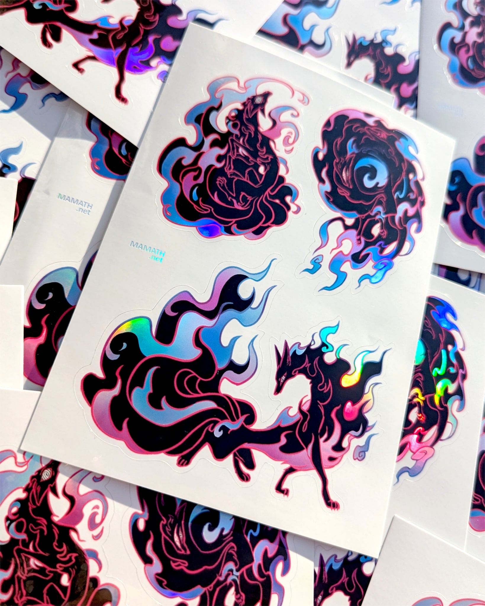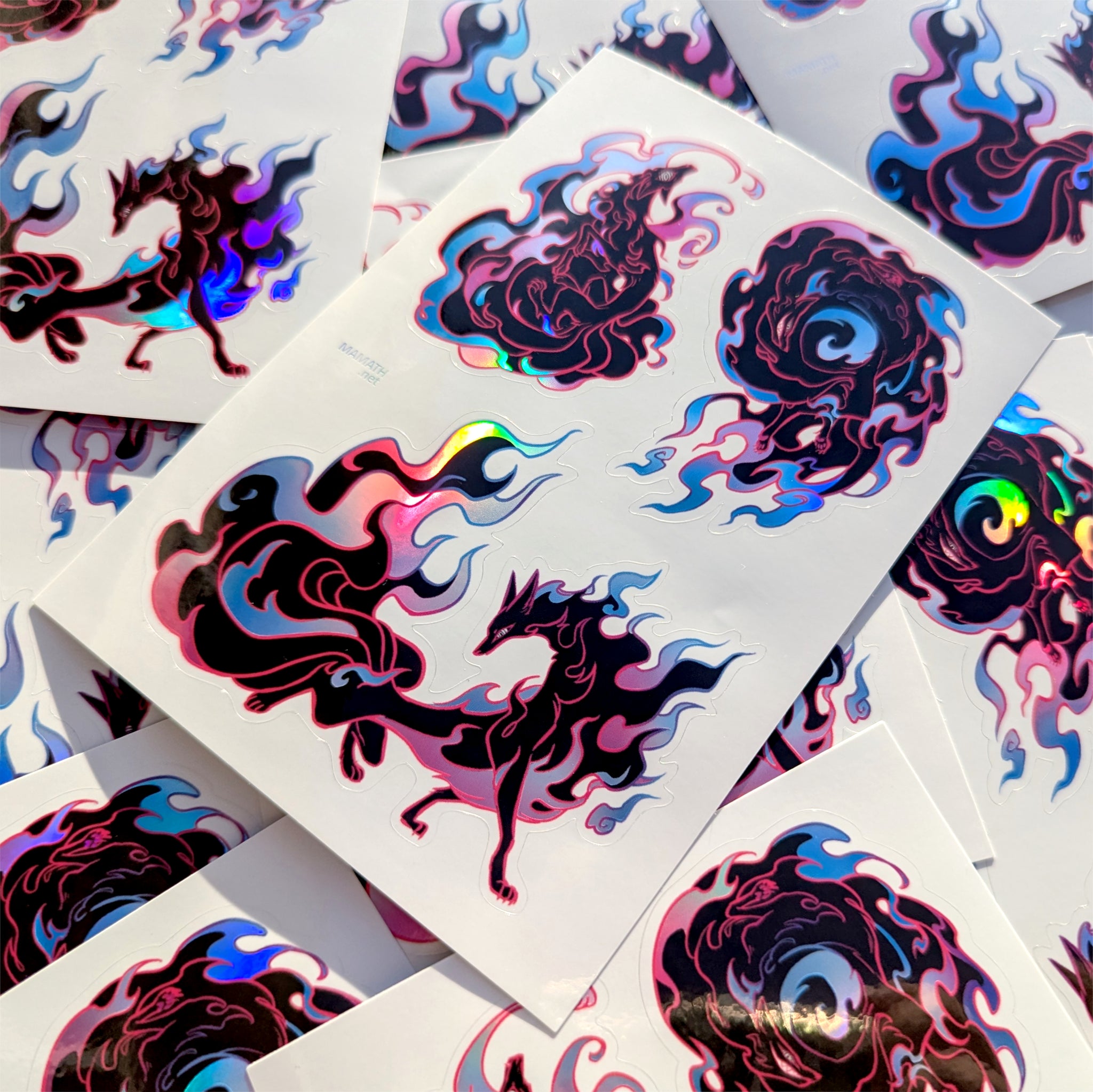These three spooks are printed on holographic vinyl so that their eyes and flames are bright and reflect a rainbow of colours. Each sticker is kiss cut so you can easily peel and apply them! The sheet measures 6x4 inches and each individual fox sticker is around 2.5-3 inches long.