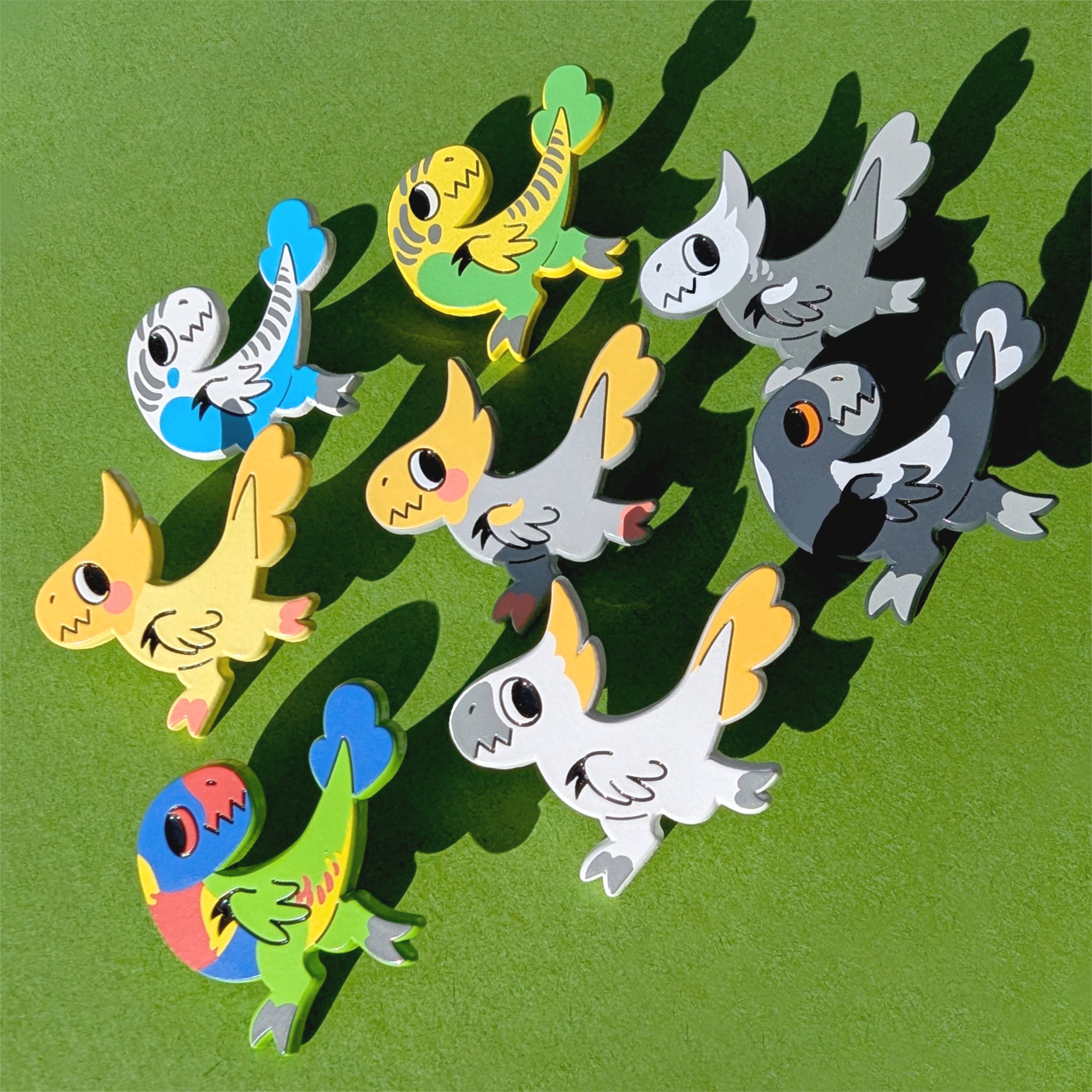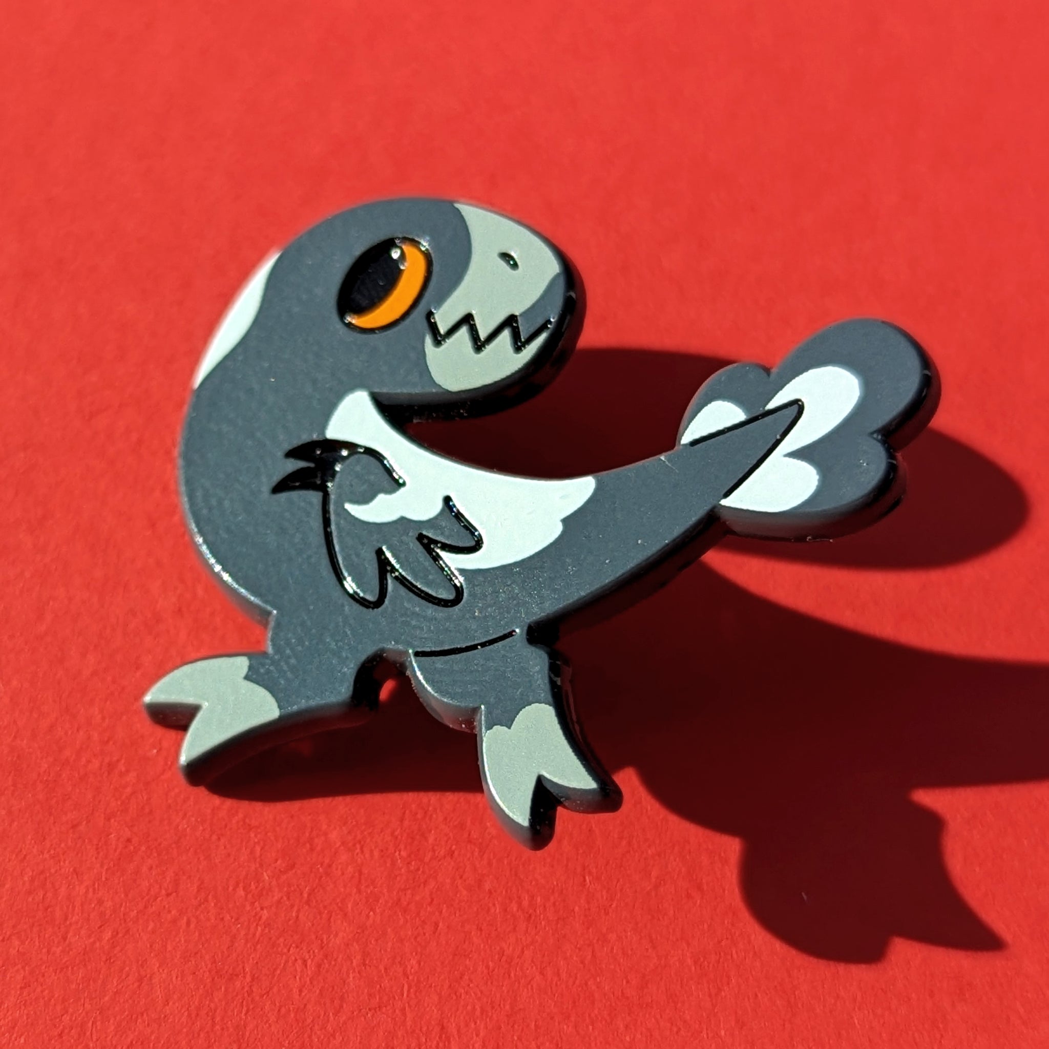 The beloved Australian magpie tries on a bit of dinosaur! Be sure to check out the other options in the deeno pin series for more fun dino-birds.