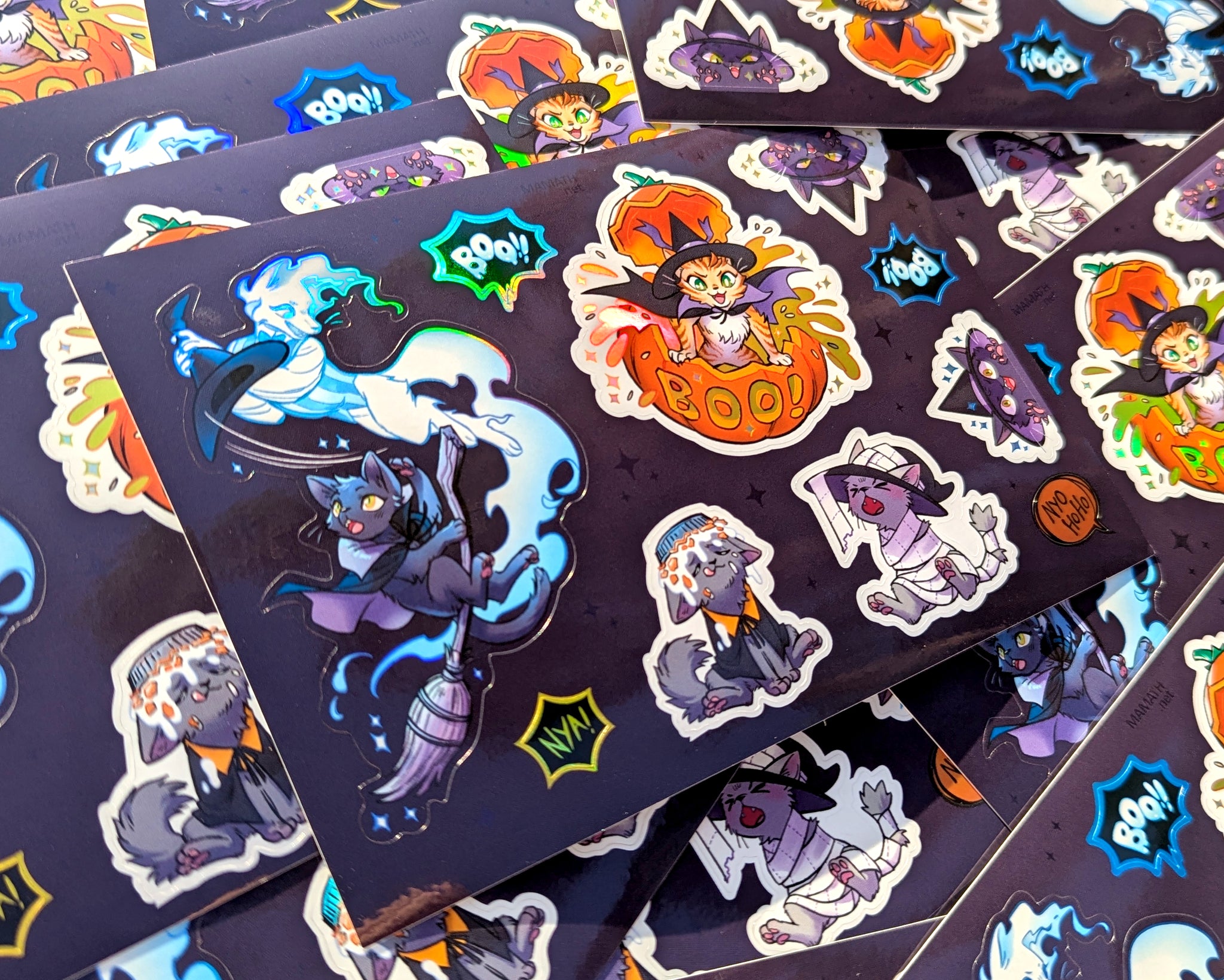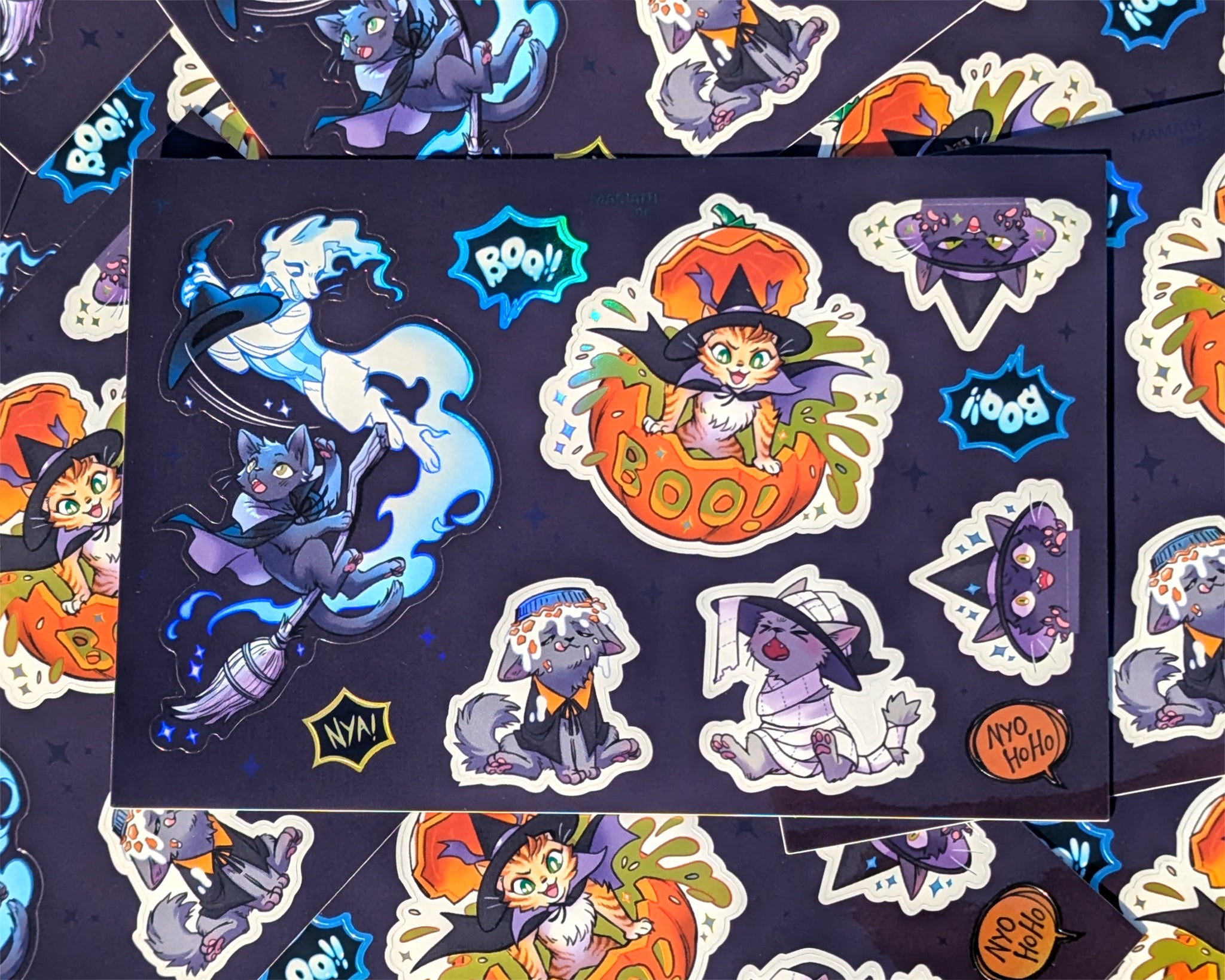 Witch Kitties: Tricky Sticks! Holo Vinyl Sticker Sheet (2025)